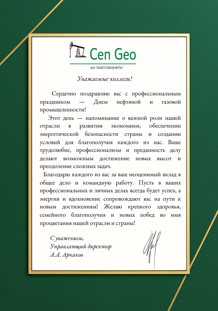 Управляющий директор АО «ИНГУШНЕФТЬ» А.А.Арчаков поздравил коллег с Днем героев отечества!
